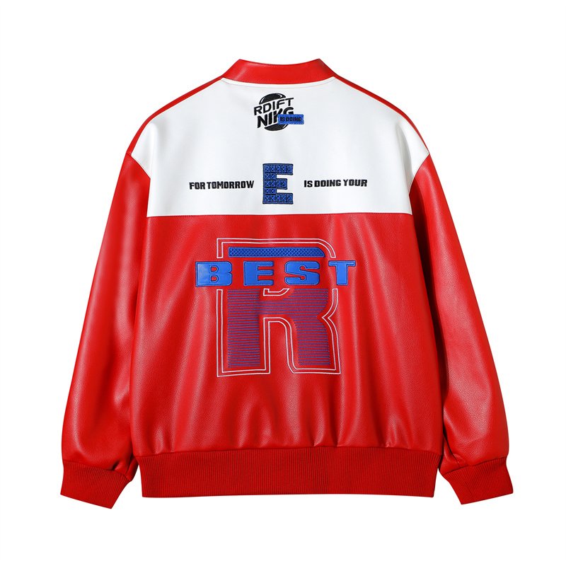 Kundenspezifische Motorradjacken, hochwertiger Rennanzug, Herren-Motorrad-PU-Jacke, bestickte Paar-Lederjacke, gewebt