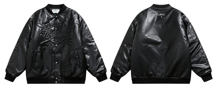 Chaquetas y abrigos con estilo para hombre, chaqueta de cuero sintético de imitación para motocicleta, color negro, con bordado, para invierno