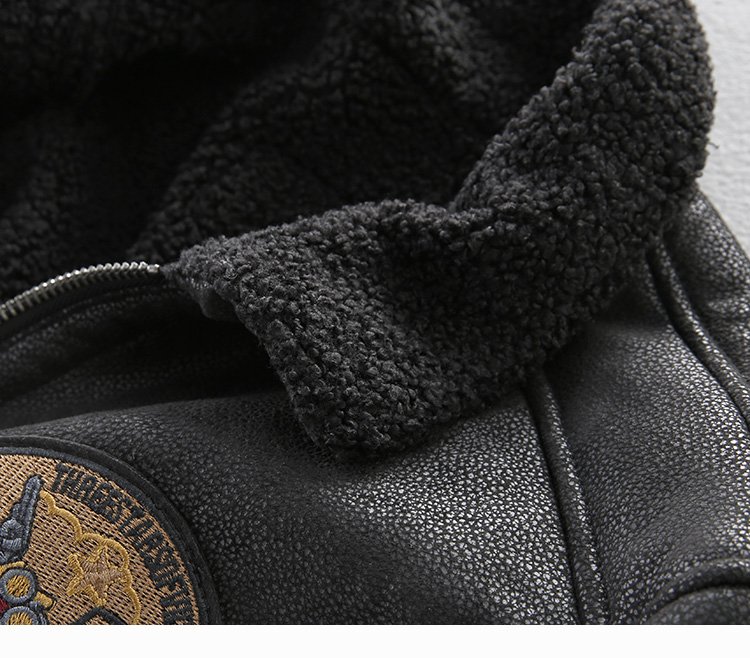 Chaqueta Bomber de cuero para hombre, chaqueta de cuero de motocicleta de piel de cordero gruesa con forro de lana, chaqueta de PU de una pieza de piel sintética de alta calidad