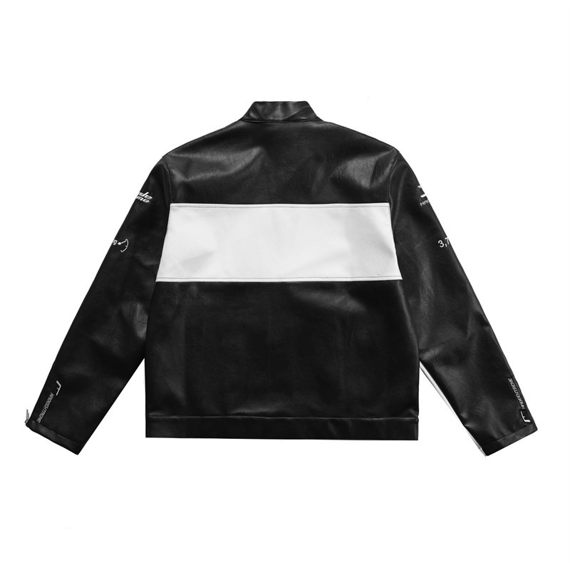 Giacca da moto con cerniera per industria pesante Giacca da corsa in tessuto Giacca da moto Stand in tessuto Pu Strenewamenmshort Sleevege Pu
