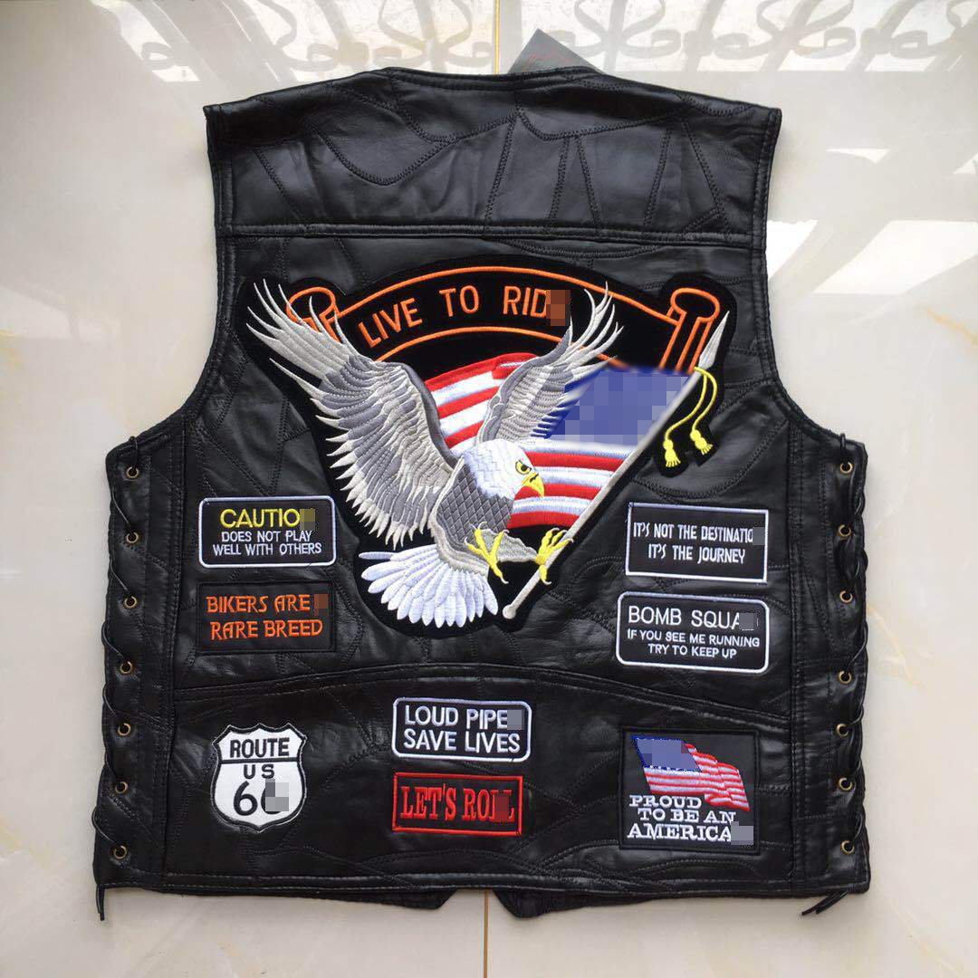 Gilet da motociclista in pelle da uomo con gilet ricamato da moto da strada da uomo di vendita caldo