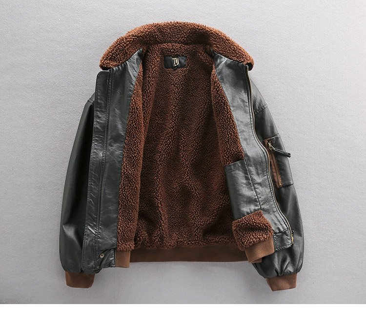 Luxury custom high quality flight jacket plus velvet padded leather men’s winter Sherpa collar motorcycle leather jacket
