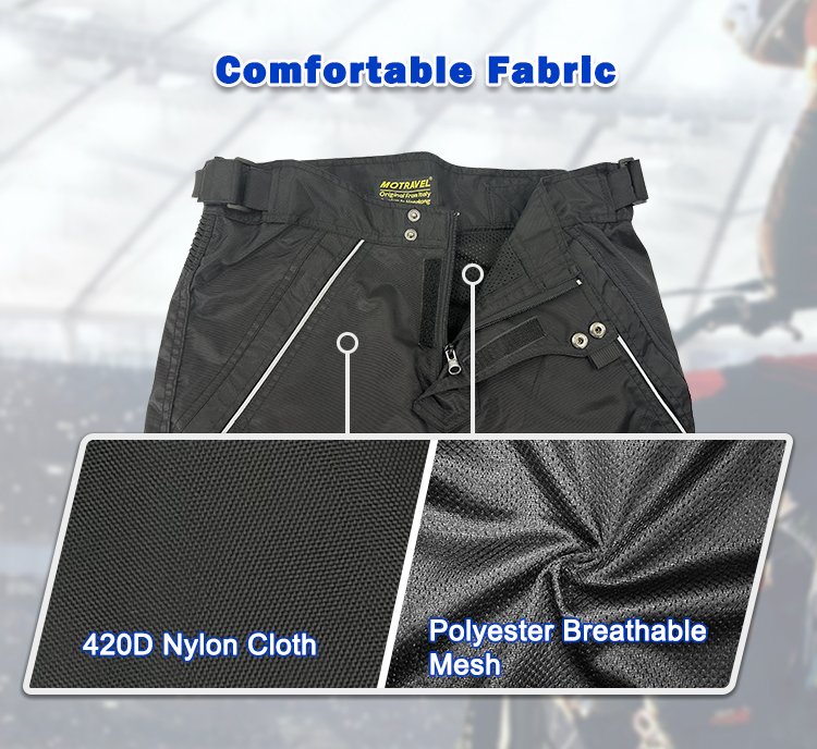 1. Durable and Protective Material: Custom made motorcycle pants tailored for the Australian market, such as the MOTRAVEL HMP002, are crafted from 100% nylon, providing durability and robust protection. These pants feature anti-UV, flame-retardant, and waterproof qualities, making them ideal for diverse weather conditions prevalent in Australia.